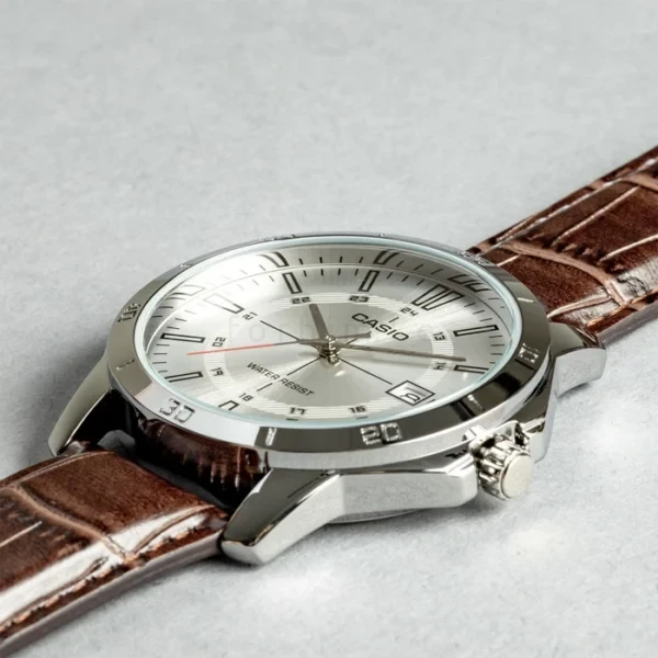 Casio builds the Casio MTP-V004L-7C with high-quality materials for daily resilience. It features a genuine leather band that feels soft and flexible against your skin. This strap remains breathable even during long commutes or intense office hours. Furthermore, the adjustable buckle clasp ensures a secure and custom fit for any wrist size. The leather gains character and becomes more comfortable as you wear it over time. Additionally, the mineral glass crystal protects the clean dial from accidental scratches. Therefore, your watch maintains its sharp, showroom appearance for years. Consequently, you can trust this watch to be a dependable daily partner.