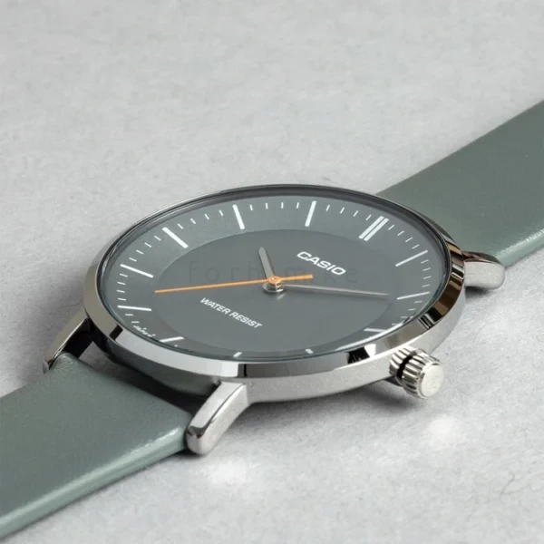 The Casio MTP-VT04L-8EDF is a bold evolution of the classic minimalist watch. It features a modern slate grey dial paired with a premium black leather strap. If you want a watch that feels fresh and urban, this model is your best choice. Many minimalist watches look too traditional or thin. However, this model uses a larger case diameter to create a stronger presence on your wrist. Furthermore, the silver-toned case provides a bright frame for the unique grey face. Consequently, you receive a timepiece that bridges the gap between classic elegance and modern street style.
