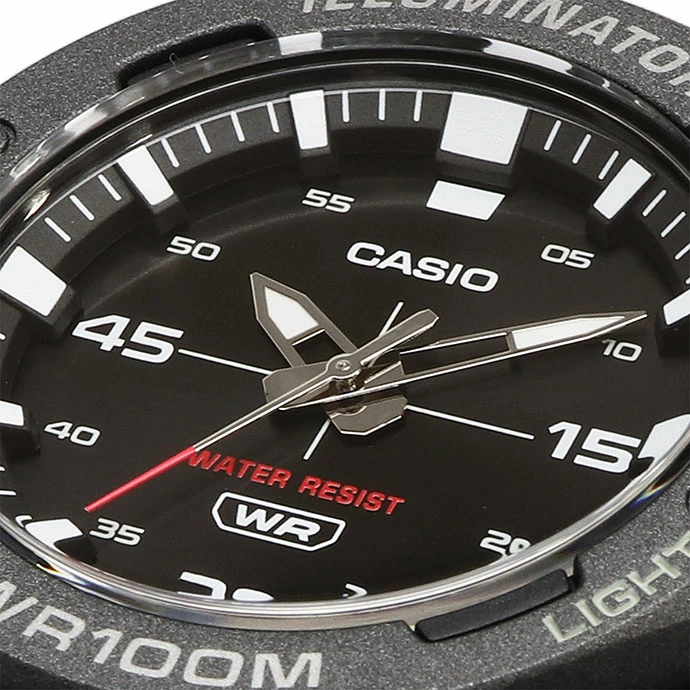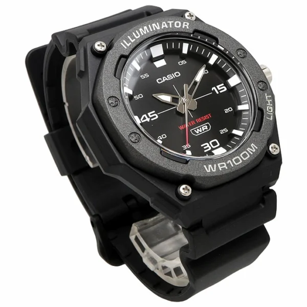When you examine the dial of the Casio MW-610H-1AV, the first thing you notice is the incredible depth of the 3D index markers. These large, raised numerals ensure that you can read the time quickly under any lighting conditions. Additionally, the high-quality resin glass protects the face from the scratches and scuffs typical of an active lifestyle. Therefore, your watch maintains its pristine appearance even after months of heavy use. Because Casio prioritizes user experience, the contrast between the hands and the dial remains sharp and clear.