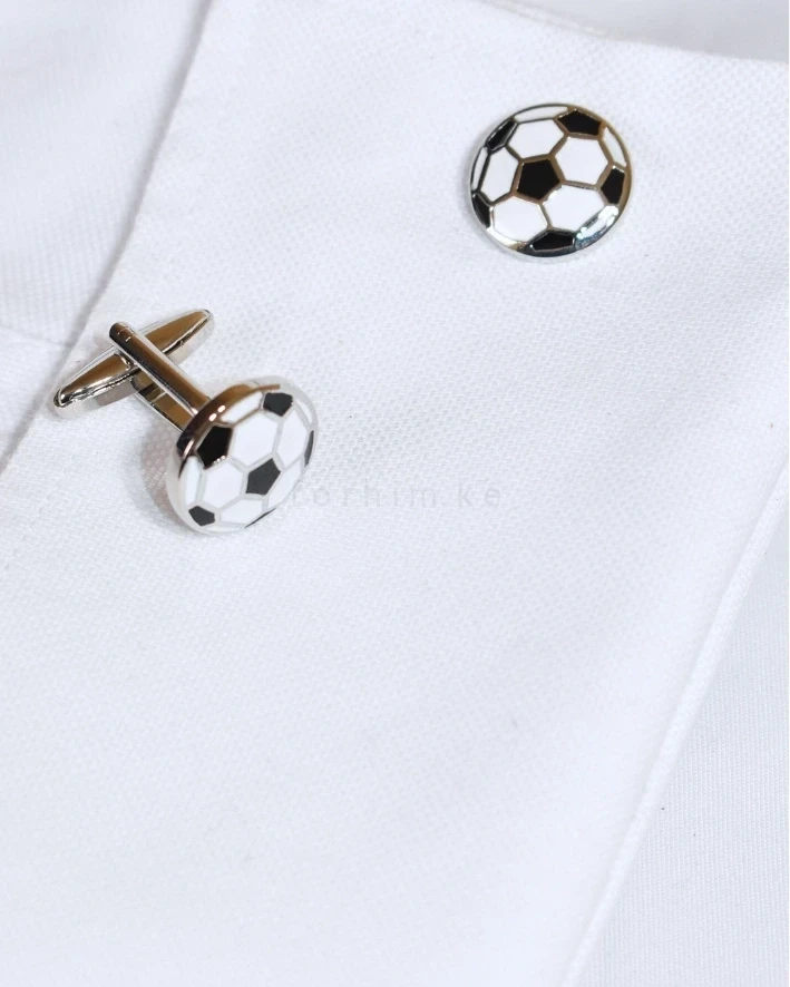 Show your love for the game with Soccer Ball Enamel Cufflinks. Premium black and white finish, perfect for sports fans and groomsmen gifts in Kenya.