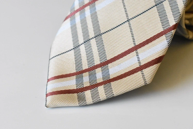The Heritage Check Pattern Necktie is an essential addition to any man’s formal collection. It features the iconic diagonal check motif in a sophisticated palette of camel, white, grey, and deep burgundy stripes. If you want a necktie that balances heritage charm with professional versatility, this model is your best choice. Many patterned ties rely on loud, seasonal colors that quickly go out of style. However, this classic check pattern offers a timeless look that remains relevant year after year. Furthermore, the neutral base makes it incredibly easy to coordinate with almost any suit in your wardrobe. Consequently, you receive a neckpiece that upgrades your daily style with absolute confidence.